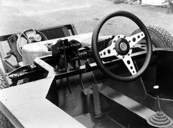 Les commandesTout d'abord, on s'occupera de la commande des vitesses, qui proviendra d'une Renault 8 et dont la tringle sera raccourcie à la longueur voulue. Le levier sera fixé sur le tunnel central B du châssis-coque.